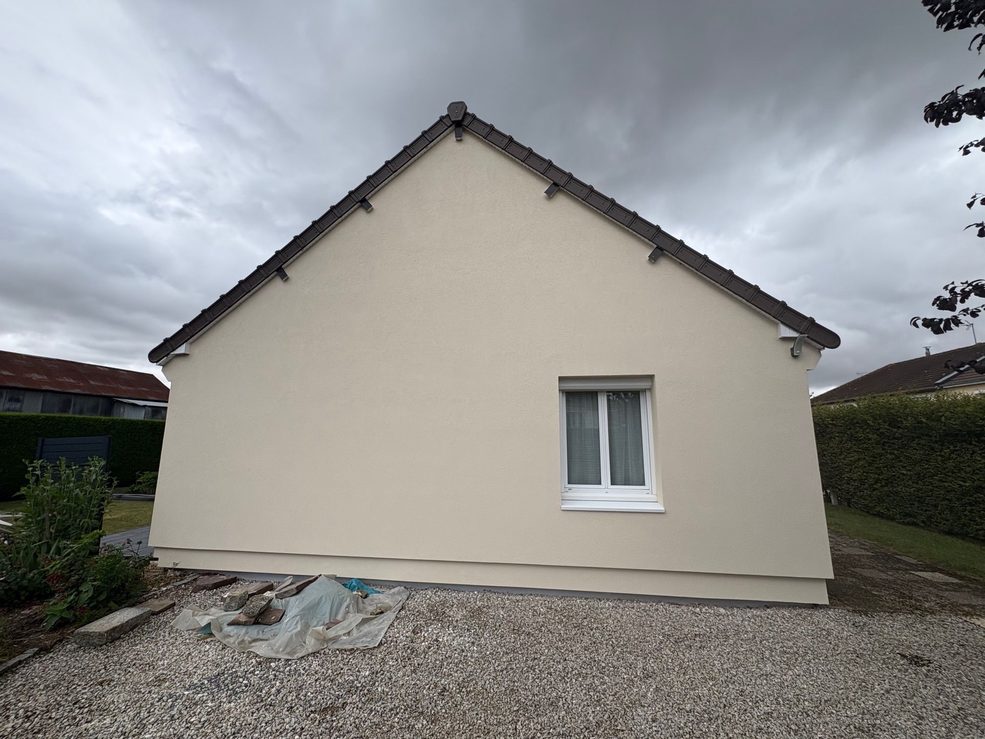 Nos équipes viennent d’achever une isolation thermique par l’extérieur (ITE) avec finition enduit pour ce pavillon.
